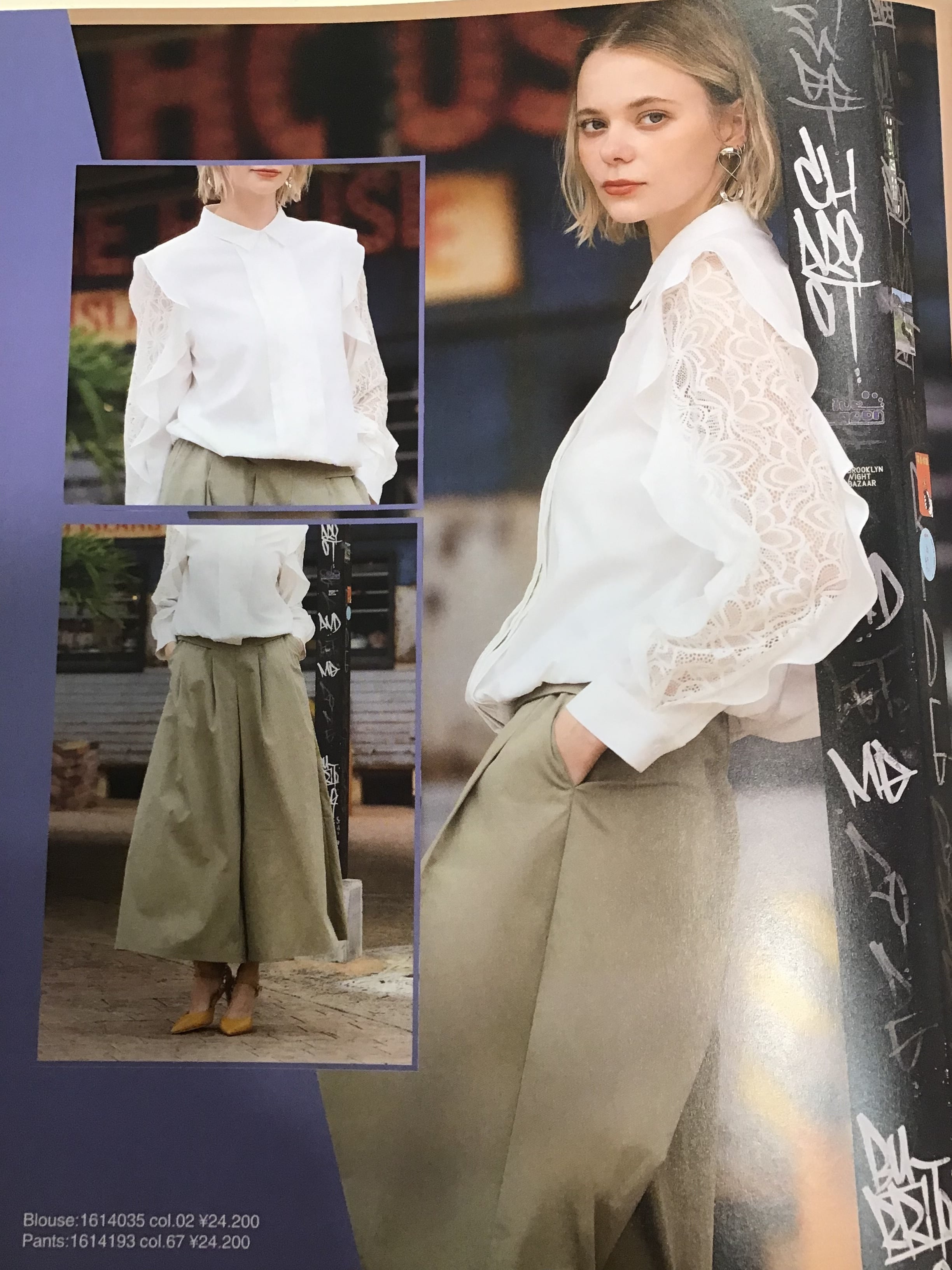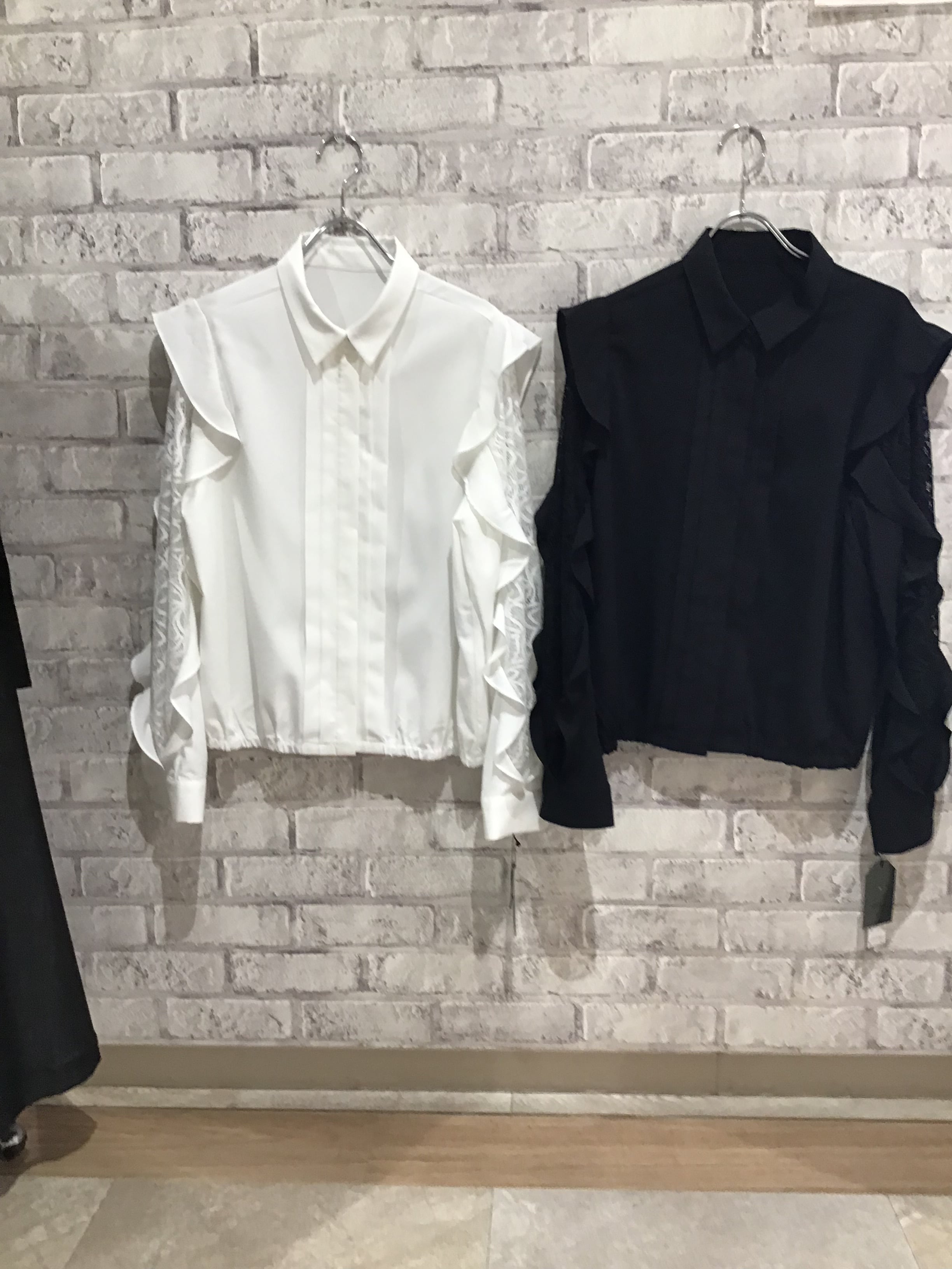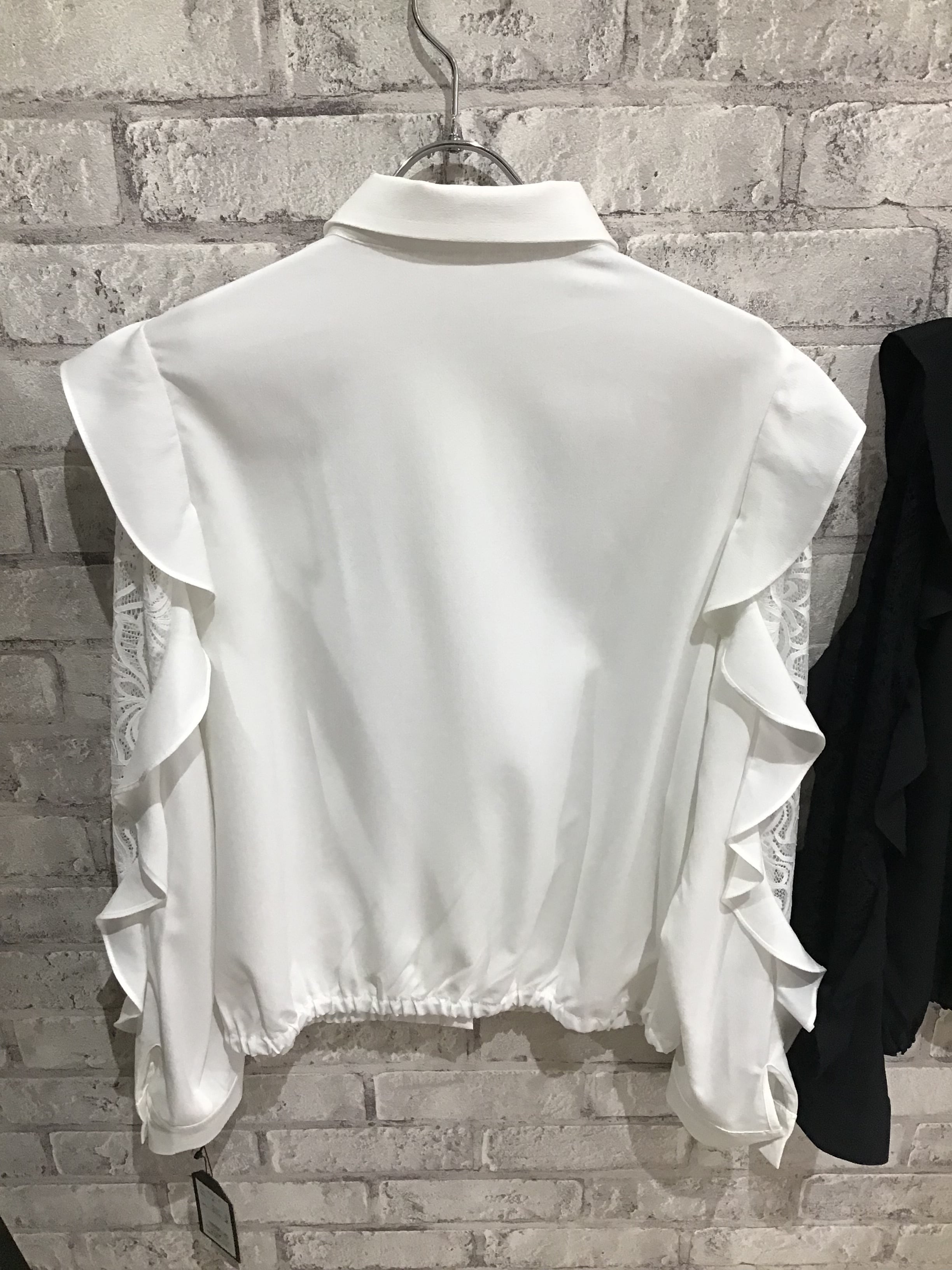 袖にレースとフリルをあしらった手の込んだブラウスです。